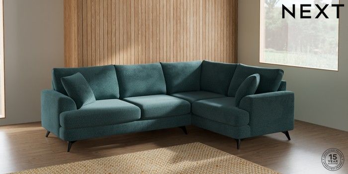 7.2.5 Buy Parker Medium Corner Sofa - Right Hand Chunky Chenille Mid Teal Green High Metal - Black from the Laura Ashley online shop Click here to use our website with more accessibility support, for example screen readers
