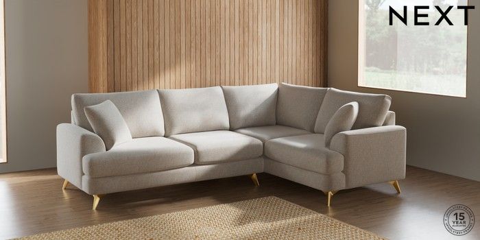 7.2.4 Buy Parker Medium Corner Sofa - Right Hand Chunky Marl Oyster High Metal - Brass from the Laura Ashley online shop Click here to use our website with more accessibility support, for example screen readers