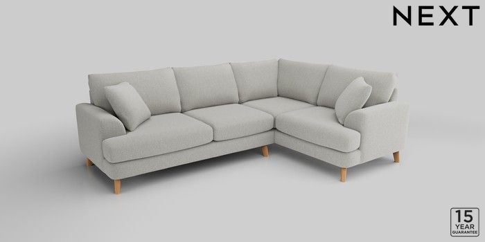 6.12.1 Buy Parker Medium Corner Sofa - Right Hand Chunky Texture Dove Low Retro Tapered - Light from the Laura Ashley online shop Click here to use our website with more accessibility support, for example screen readers