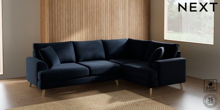7.2.5 Buy Parker Medium Corner Sofa - Right Hand Fine Chenille Easy Clean Dark Navy Blue Low Retro Tapered - Light from the Laura Ashley online shop Click here to use our website with more accessibility support, for example screen readers