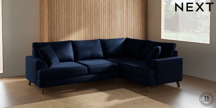 7.0.3 Buy Parker Medium Corner Sofa - Right Hand Luxe Chenille Navy Blue Low Retro Tapered - Mid from the Laura Ashley online shop Click here to use our website with more accessibility support, for example screen readers