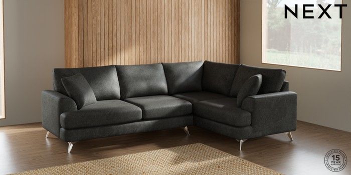 7.2.5 Buy Parker Medium Corner Sofa - Right Hand Plush Chenille Dark Grey High Metal - Chrome from the Laura Ashley online shop Click here to use our website with more accessibility support, for example screen readers
