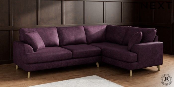 7.2.6 Buy Parker Medium Corner Sofa - Right Hand Plush Chenille Dark Plum Purple Low Retro Tapered - Light from the Laura Ashley online shop Click here to use our website with more accessibility support, for example screen readers