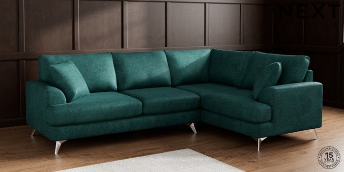 7.2.5 Buy Parker Medium Corner Sofa - Right Hand Plush Chenille Dark Teal Green High Metal - Chrome from the Laura Ashley online shop Click here to use our website with more accessibility support, for example screen readers