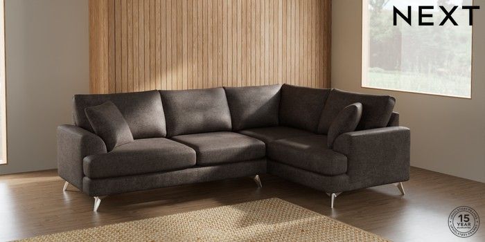 7.2.5 Buy Parker Medium Corner Sofa - Right Hand Plush Chenille Mink Brown High Metal - Chrome from the Laura Ashley online shop Click here to use our website with more accessibility support, for example screen readers