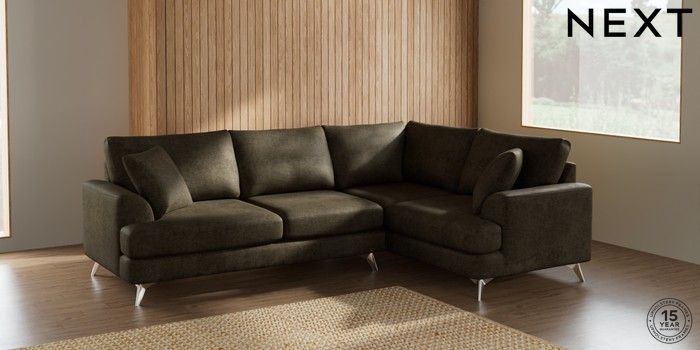 7.2.5 Buy Parker Medium Corner Sofa - Right Hand Plush Chenille Moss Green High Metal - Chrome from the Laura Ashley online shop Click here to use our website with more accessibility support, for example screen readers