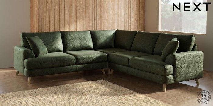 7.2.5 Buy Parker Medium Corner Sofa - Universal Boucle Chenille Dark Moss Green Low Retro Tapered - Light from the Laura Ashley online shop Click here to use our website with more accessibility support, for example screen readers