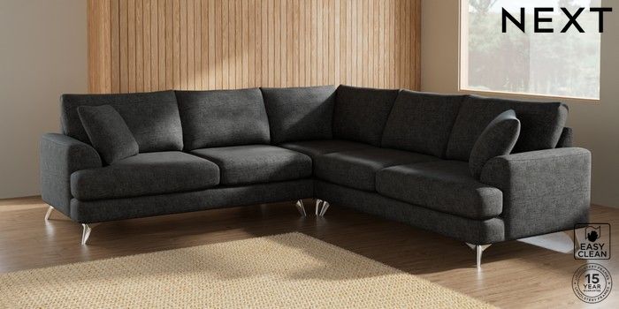 7.2.5 Buy Parker Medium Corner Sofa - Universal Boucle Weave Easy Clean Charcoal Grey High Metal - Chrome from the Laura Ashley online shop Click here to use our website with more accessibility support, for example screen readers