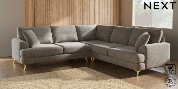 7.2.5 Buy Parker Medium Corner Sofa - Universal Chunky Boucle Easy Clean Dove High Metal - Brass from the Laura Ashley online shop Click here to use our website with more accessibility support, for example screen readers