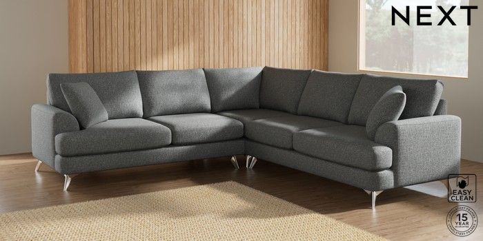 7.2.5 Buy Parker Medium Corner Sofa - Universal Chunky Boucle Easy Clean Mid Grey High Metal - Chrome from the Laura Ashley online shop Click here to use our website with more accessibility support, for example screen readers