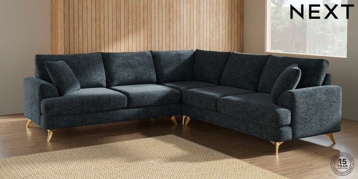 7.2.5 Buy Parker Medium Corner Sofa - Universal Chunky Chenille Dark Navy Blue High Metal - Brass from the Laura Ashley online shop Click here to use our website with more accessibility support, for example screen readers
