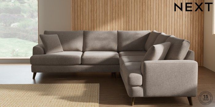 7.2.5 Buy Parker Medium Corner Sofa - Universal Chunky Chenille Light Dove Low Retro Tapered - Mid from the Laura Ashley online shop Click here to use our website with more accessibility support, for example screen readers