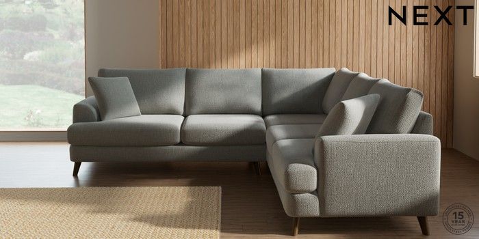 7.2.10 Buy Parker Medium Corner Sofa - Universal Chunky Texture Dove Low Retro Tapered - Mid from the Laura Ashley online shop Click here to use our website with more accessibility support, for example screen readers
