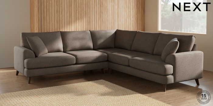 7.2.5 Buy Parker Medium Corner Sofa - Universal Chunky Weave Dark Natural Low Retro Tapered - Mid from the Laura Ashley online shop Click here to use our website with more accessibility support, for example screen readers