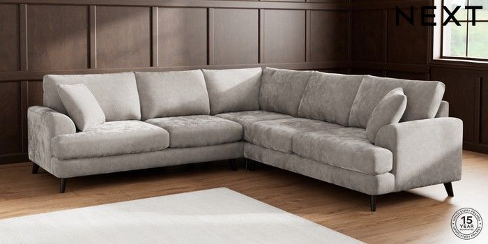 7.2.5 Buy Parker Medium Corner Sofa - Universal Distressed Velour French Grey Low Retro Tapered - Dark from the Laura Ashley online shop Click here to use our website with more accessibility support, for example screen readers
