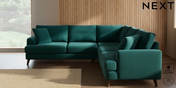 7.2.10 Buy Parker Medium Corner Sofa - Universal Fine Chenille Easy Clean Dark Juniper Green Low Retro Tapered - Mid from the Laura Ashley online shop Click here to use our website with more accessibility support, for example screen readers