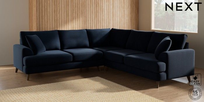7.2.5 Buy Parker Medium Corner Sofa - Universal Fine Chenille Easy Clean Dark Navy Blue Low Retro Tapered - Mid from the Laura Ashley online shop Click here to use our website with more accessibility support, for example screen readers