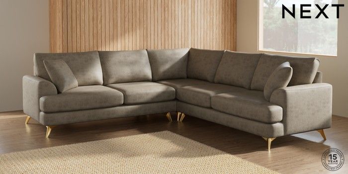 7.2.5 Buy Parker Medium Corner Sofa - Universal Monza Faux Leather Easy Clean Mink Brown High Metal - Brass from the Laura Ashley online shop Click here to use our website with more accessibility support, for example screen readers