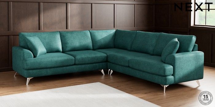 7.2.5 Buy Parker Medium Corner Sofa - Universal Plush Chenille Dark Teal Green High Metal - Chrome from the Laura Ashley online shop Click here to use our website with more accessibility support, for example screen readers