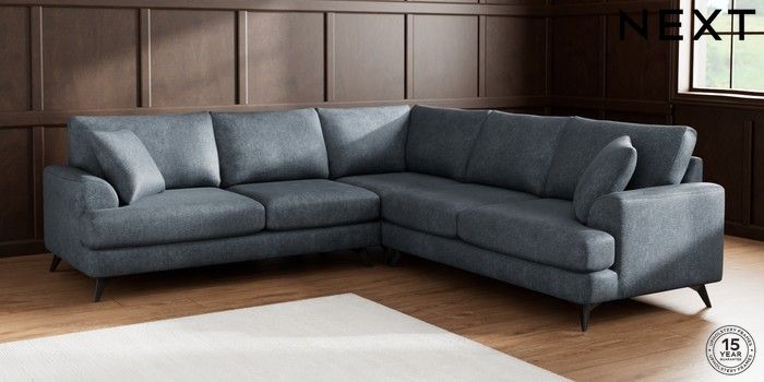 7.2.5 Buy Parker Medium Corner Sofa - Universal Plush Chenille Slate Blue High Metal - Black from the Laura Ashley online shop Click here to use our website with more accessibility support, for example screen readers