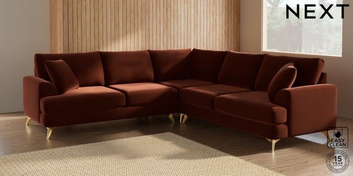 7.2.5 Buy Parker Medium Corner Sofa - Universal Plush Velvet Easy Clean Ginger Orange High Metal - Brass from the Laura Ashley online shop Click here to use our website with more accessibility support, for example screen readers