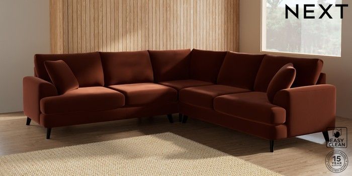 7.2.5 Buy Parker Medium Corner Sofa - Universal Plush Velvet Easy Clean Ginger Orange Low Retro Tapered - Dark from the Laura Ashley online shop Click here to use our website with more accessibility support, for example screen readers