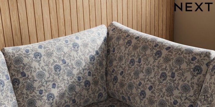 7.3.1 Buy Parker Medium Corner Sofa - Universal Relaxed Linen Look Print Woodblock Floral Blue Low Retro Tapered - Dark from the Laura Ashley online shop