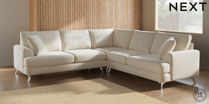 7.2.5 Buy Parker Medium Corner Sofa - Universal Ripple Chenille Oyster High Metal - Chrome from the Laura Ashley online shop Click here to use our website with more accessibility support, for example screen readers