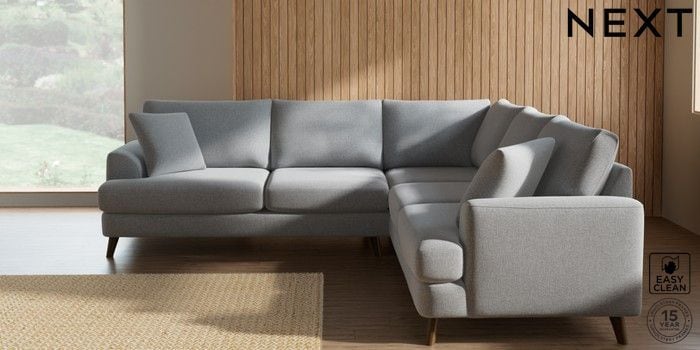 7.2.10 Buy Parker Medium Corner Sofa - Universal Tweedy Blend Easy Clean Light Silver Grey Low Retro Tapered - Mid from the Laura Ashley online shop Click here to use our website with more accessibility support, for example screen readers