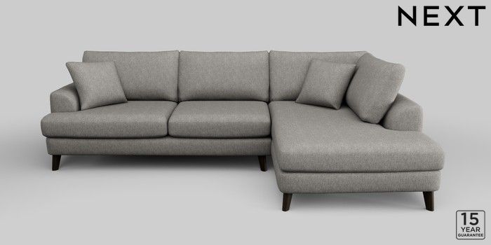 6.12.1 Buy Parker Large Corner Chaise - Right Hand Tweedy Chenille Mid Grey Low Retro Tapered - Dark from the Laura Ashley online shop Click here to use our website with more accessibility support, for example screen readers