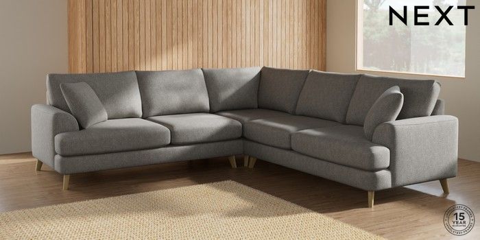 7.2.5 Buy Parker Medium Corner Sofa - Universal Tweedy Chenille Mid Grey Low Retro Tapered - Light from the Laura Ashley online shop Click here to use our website with more accessibility support, for example screen readers