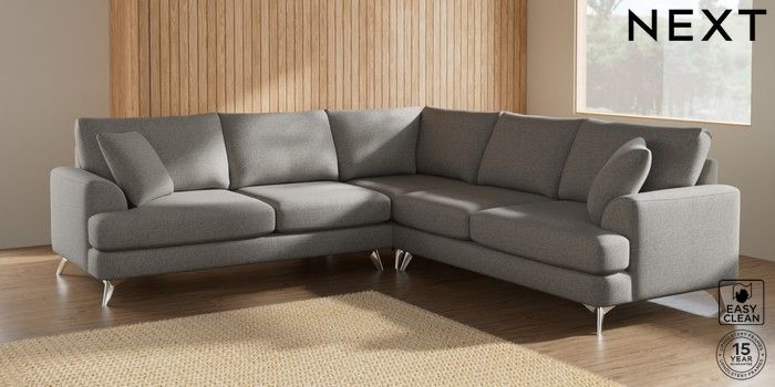 7.2.5 Buy Parker Medium Corner Sofa - Universal Woven Chenille Easy Clean Light Grey High Metal - Chrome from the Laura Ashley online shop Click here to use our website with more accessibility support, for example screen readers