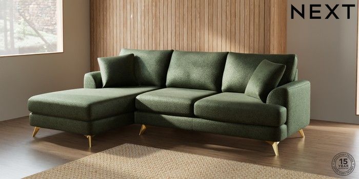 7.2.5 Buy Parker Medium Sofa Chaise - Left Hand Boucle Chenille Dark Moss Green High Metal - Brass from the Laura Ashley online shop Click here to use our website with more accessibility support, for example screen readers