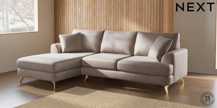 7.2.5 Buy Parker Medium Sofa Chaise - Left Hand Boucle Chenille Light Natural High Metal - Brass from the Laura Ashley online shop Click here to use our website with more accessibility support, for example screen readers