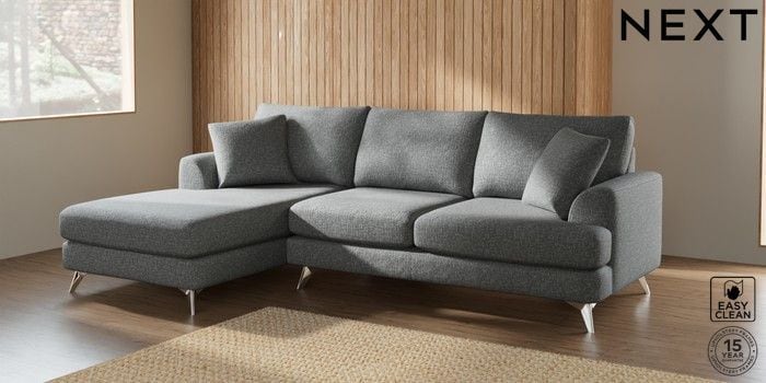 7.2.5 Buy Parker Medium Sofa Chaise - Left Hand Chunky Boucle Easy Clean Mid Grey High Metal - Chrome from the Laura Ashley online shop Click here to use our website with more accessibility support, for example screen readers