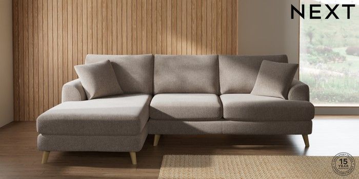 7.2.4 Buy Parker Medium Sofa Chaise - Left Hand Chunky Chenille Light Dove Low Retro Tapered - Light from the Laura Ashley online shop Click here to use our website with more accessibility support, for example screen readers