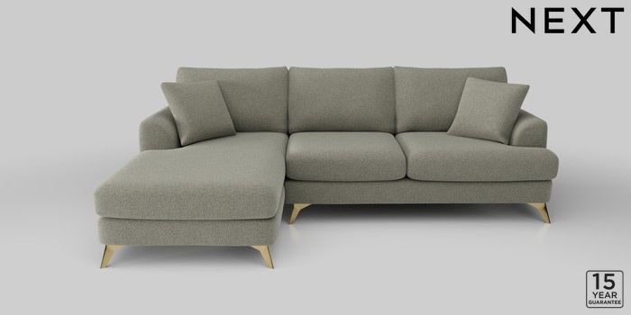 6.12.13 Buy Parker Medium Sofa Chaise - Left Hand Chunky Marl Light Olive Green High Metal - Brass from the Laura Ashley online shop Click here to use our website with more accessibility support, for example screen readers
