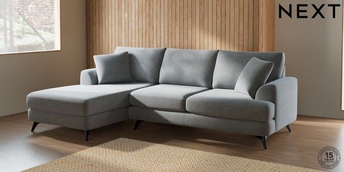7.2.5 Buy Parker Medium Sofa Chaise - Left Hand Chunky Marl Mid Grey High Metal - Black from the Laura Ashley online shop Click here to use our website with more accessibility support, for example screen readers