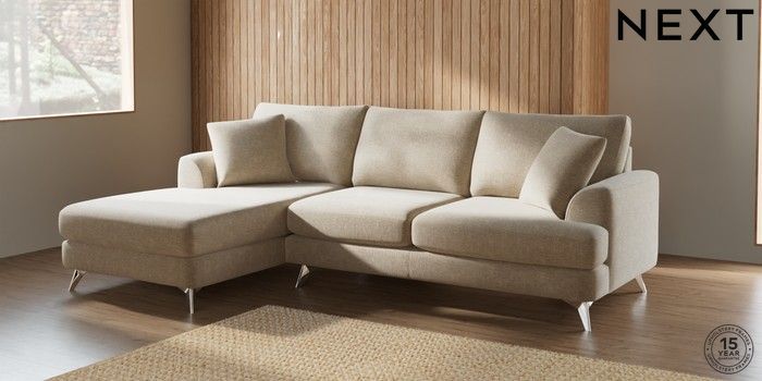 7.2.5 Buy Parker Medium Sofa Chaise - Left Hand Chunky Weave Cream High Metal - Chrome from the Laura Ashley online shop Click here to use our website with more accessibility support, for example screen readers