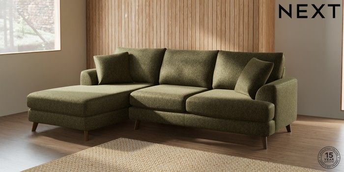 7.2.5 Buy Parker Medium Sofa Chaise - Left Hand Cotswold Chenille Dark Green Low Retro Tapered - Mid from the Laura Ashley online shop Click here to use our website with more accessibility support, for example screen readers