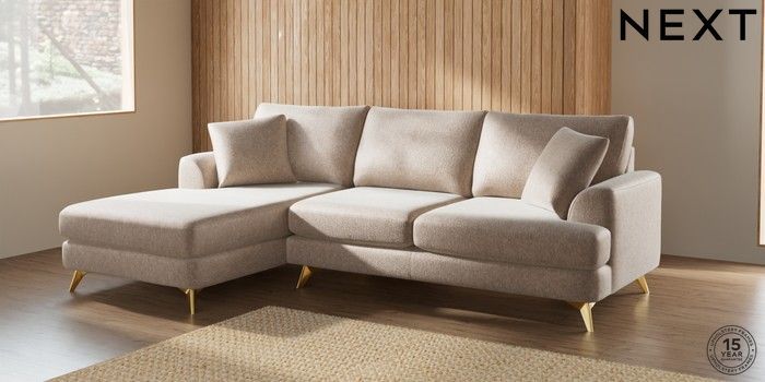 7.2.5 Buy Parker Medium Sofa Chaise - Left Hand Cotswold Chenille Light Natural High Metal - Brass from the Laura Ashley online shop Click here to use our website with more accessibility support, for example screen readers
