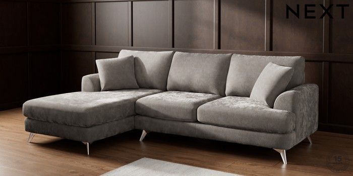 7.2.5 Buy Parker Medium Sofa Chaise - Left Hand Distressed Velour French Grey High Metal - Chrome from the Laura Ashley online shop Click here to use our website with more accessibility support, for example screen readers