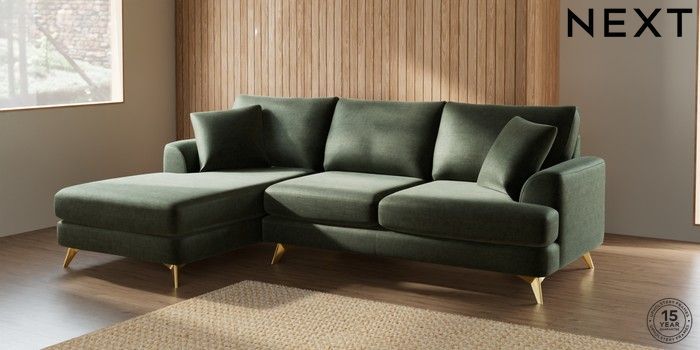 7.0.3 Buy Parker Medium Sofa Chaise - Left Hand Luxe Chenille Mid Green High Metal - Brass from the Laura Ashley online shop Click here to use our website with more accessibility support, for example screen readers