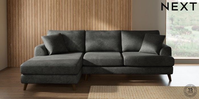 7.2.4 Buy Parker Medium Sofa Chaise - Left Hand Plush Chenille Dark Grey Low Retro Tapered - Mid from the Laura Ashley online shop Click here to use our website with more accessibility support, for example screen readers