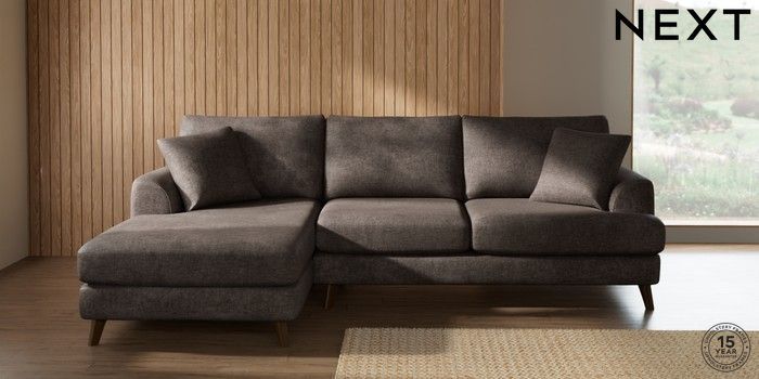 7.2.4 Buy Parker Medium Sofa Chaise - Left Hand Plush Chenille Mink Brown Low Retro Tapered - Mid from the Laura Ashley online shop Click here to use our website with more accessibility support, for example screen readers