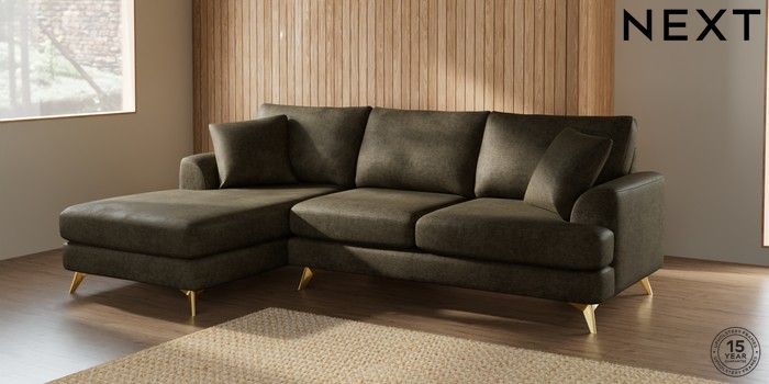 7.2.5 Buy Parker Medium Sofa Chaise - Left Hand Plush Chenille Moss Green High Metal - Brass from the Laura Ashley online shop Click here to use our website with more accessibility support, for example screen readers