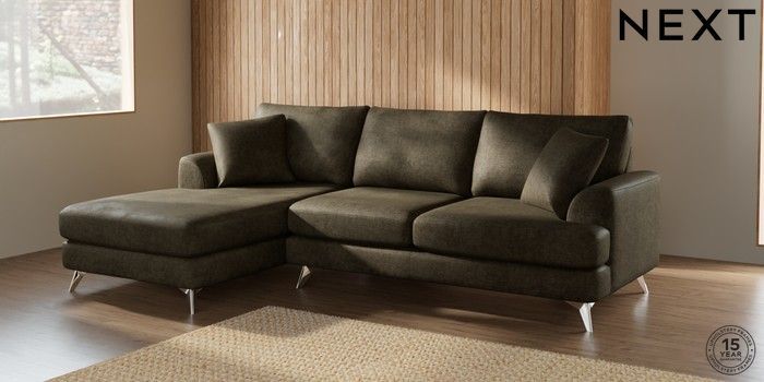 7.2.5 Buy Parker Medium Sofa Chaise - Left Hand Plush Chenille Moss Green High Metal - Chrome from the Laura Ashley online shop Click here to use our website with more accessibility support, for example screen readers