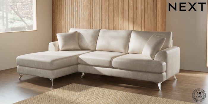 7.2.5 Buy Parker Medium Sofa Chaise - Left Hand Plush Chenille Oyster High Metal - Chrome from the Laura Ashley online shop Click here to use our website with more accessibility support, for example screen readers