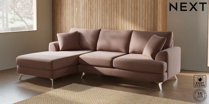 7.2.5 Buy Parker Medium Sofa Chaise - Left Hand Plush Velvet Easy Clean Mid Natural High Metal - Chrome from the Laura Ashley online shop Click here to use our website with more accessibility support, for example screen readers