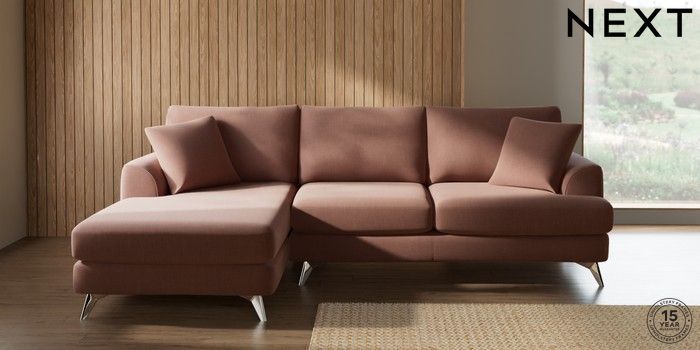 7.0.3 Buy Parker Medium Sofa Chaise - Left Hand Relaxed Linen Look Light Rust Brown High Metal - Chrome from the Laura Ashley online shop Click here to use our website with more accessibility support, for example screen readers